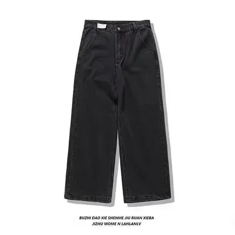 Streetwear Y2K New Fashion Joker Gothic Print Jeans Men Harajuku Casual Loose Straight Wide-leg Pants Couple Punk Mopping Jeans