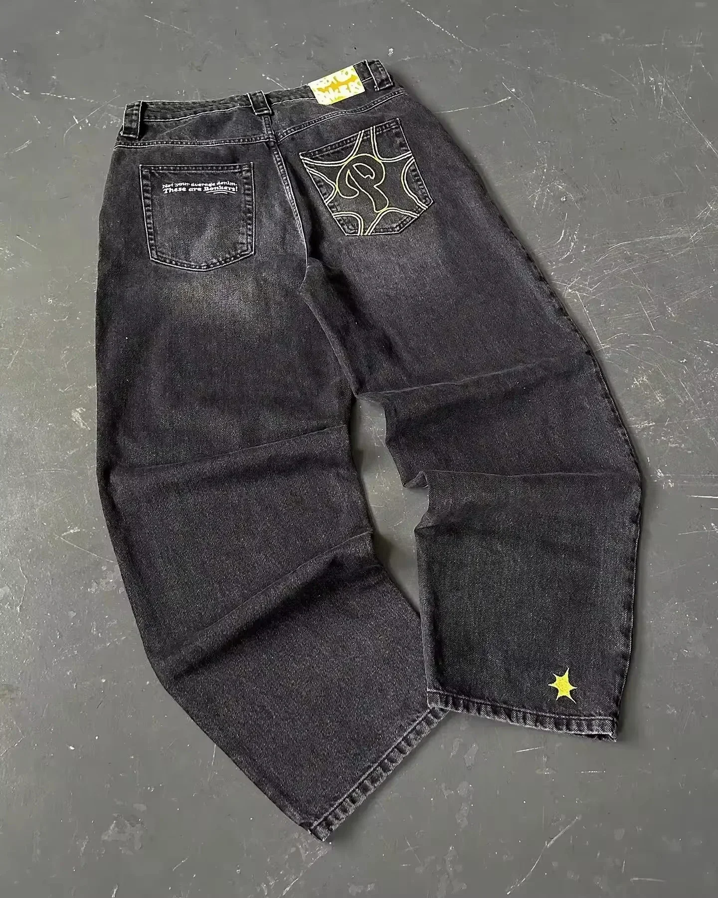 90s Streetwear American New Printed Washed Baggy Jeans Men Y2K Street Fashion Vintage Harajuku Casual Gothic High Waist Wide Leg Pants Trousers
