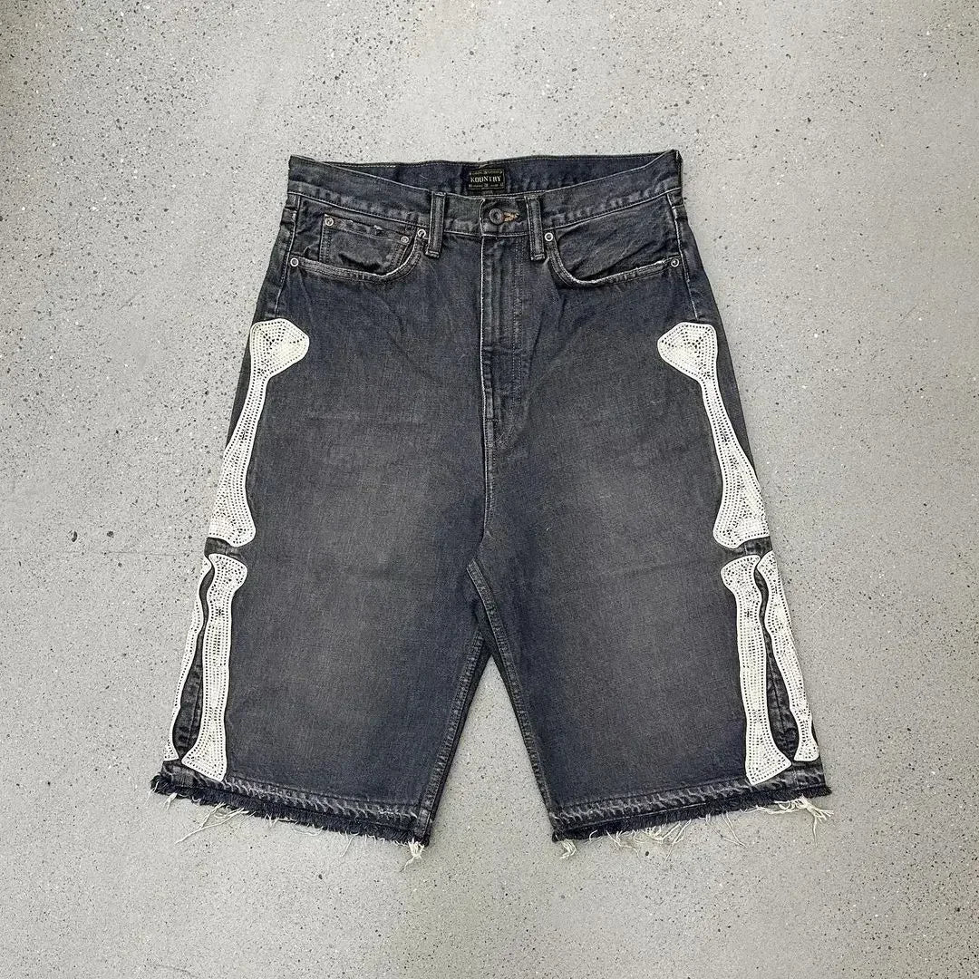 Gothic Trend New Hand-painted Cross Printed Short Jeans Men's Loose Straight Five-point Jeans Street Hip-hop Rap Y2K Shorts