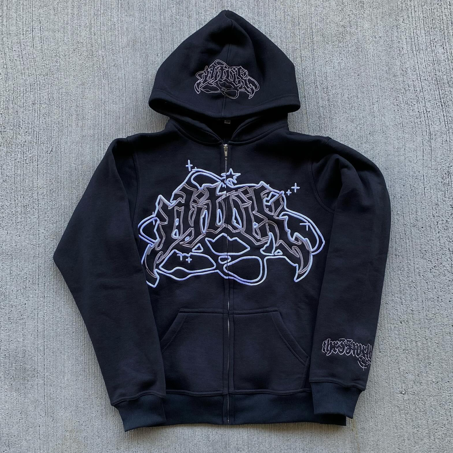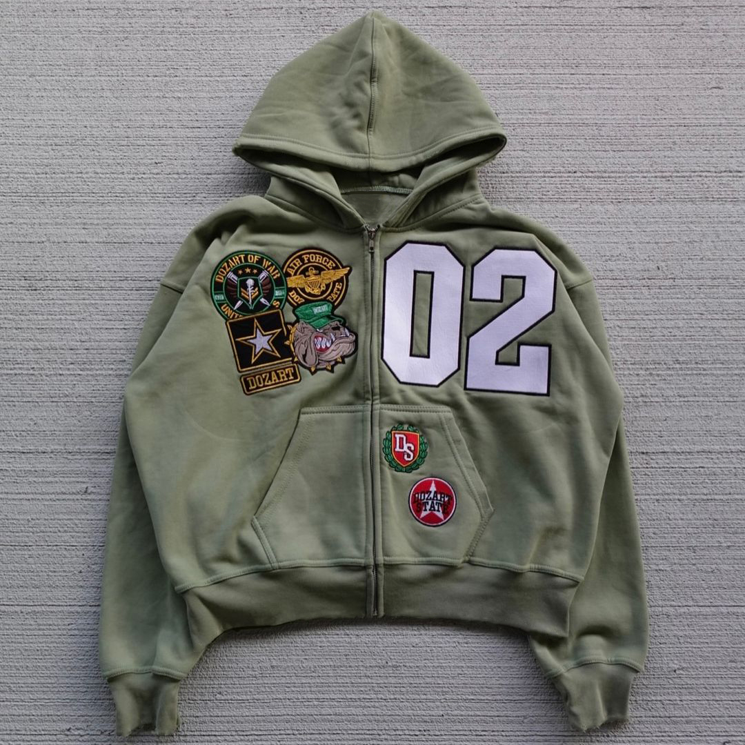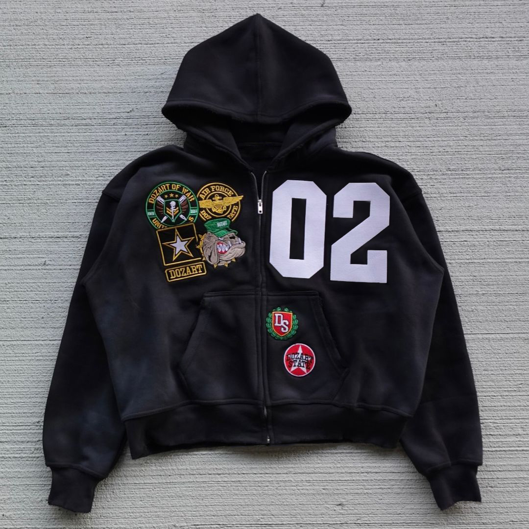 Streetwear Patched Zip-Up Hoodie