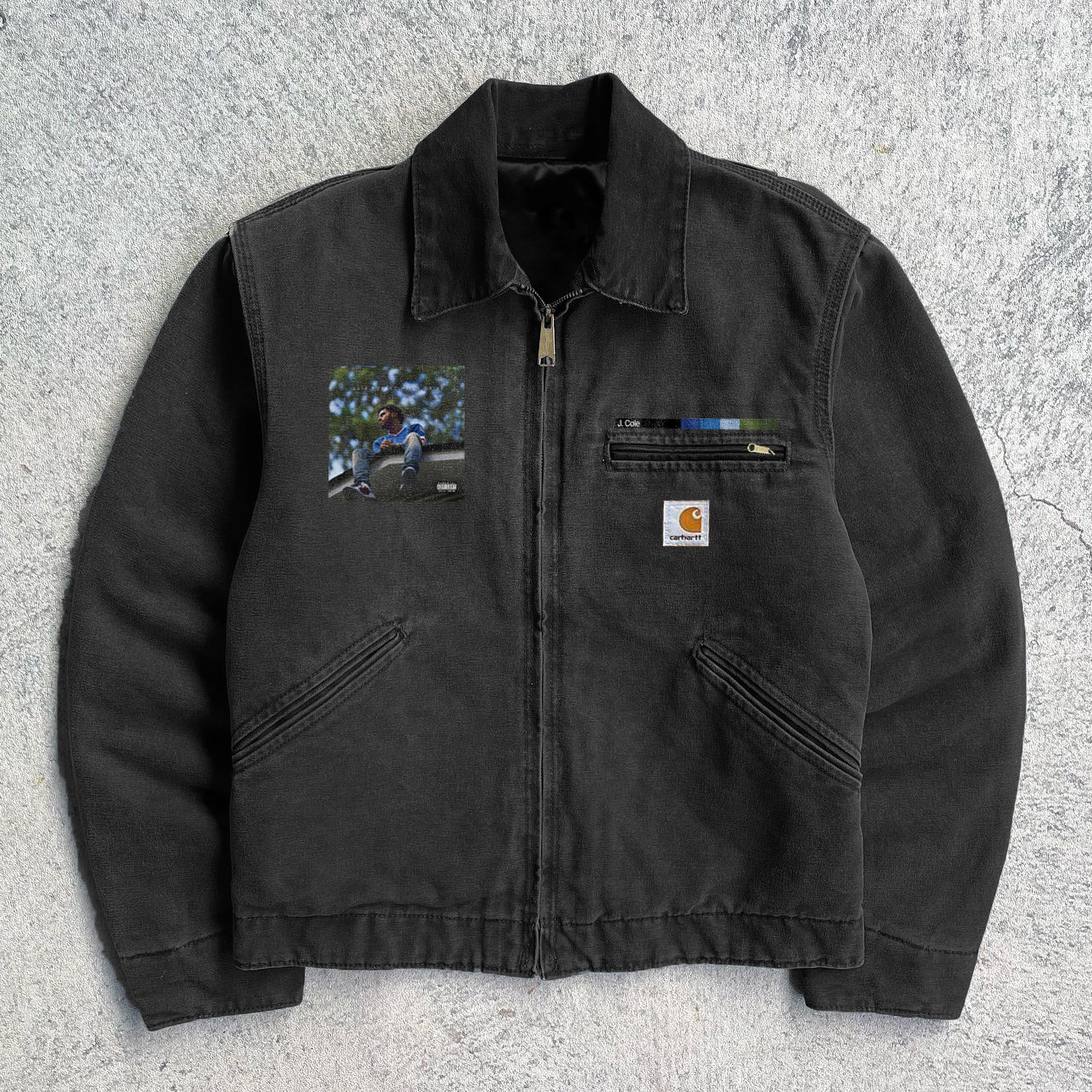 Letter Music Album Printed Long Sleeve Zipper Multi-Pocket Jacket