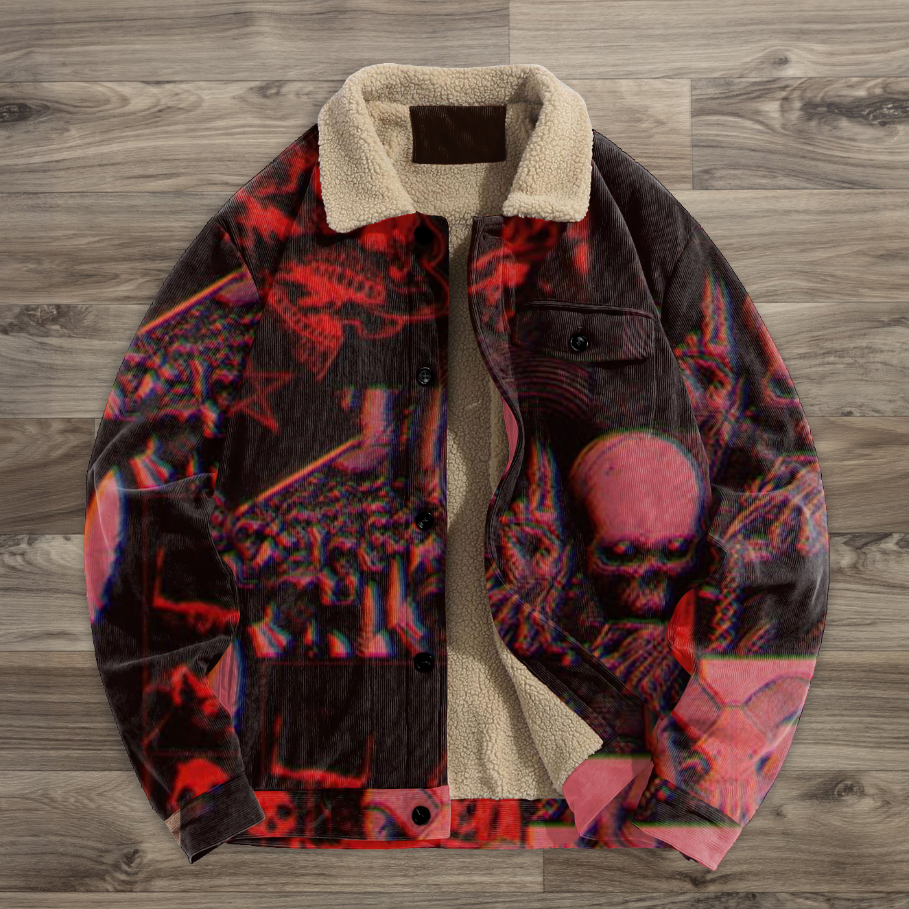 Music Single Printed Long Sleeve Zipper Multi-Pocket Jacket