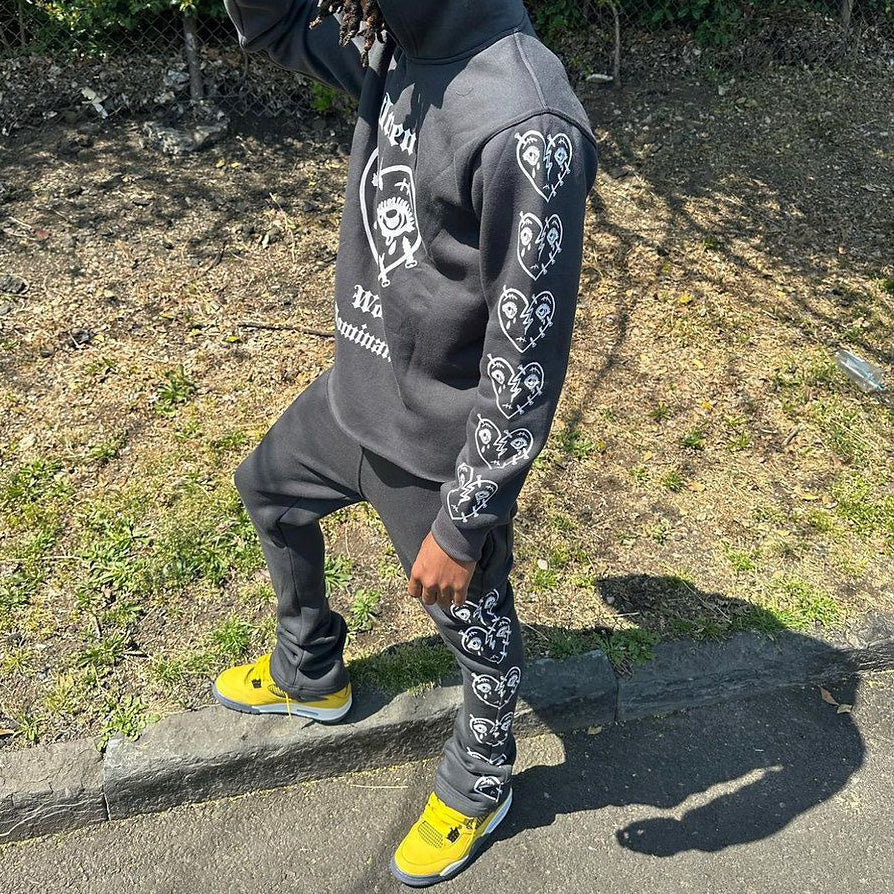 Pentagram Expression Print Hoodie Sweatpants Two Piece Set
