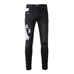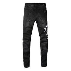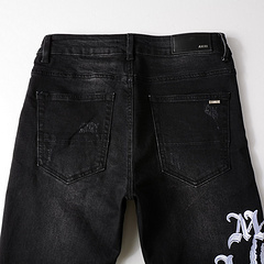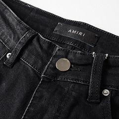 Amiri Jeans black and gray slim straight leg jeans embroidered