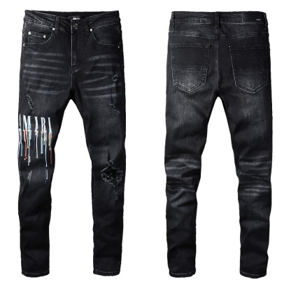 Amiri Jeans denim black and gray trousers slim straight tie dye
