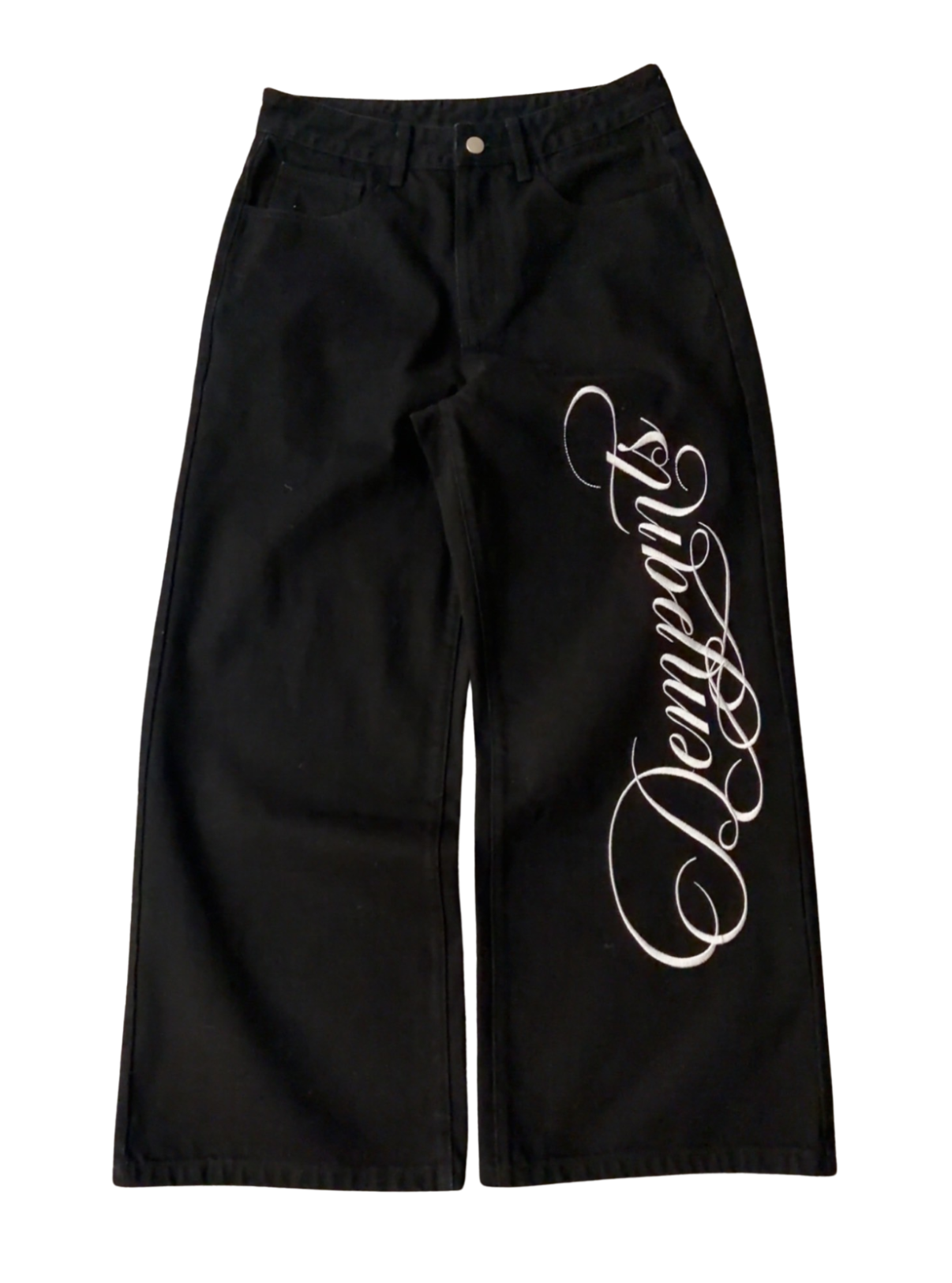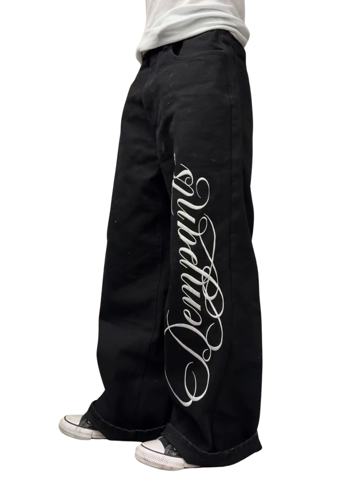 PRE-ORDER | CALIGRAPHY BAGGY JEANS - BLACK