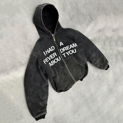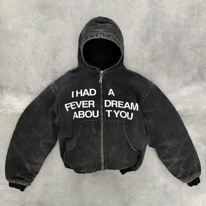Casual Letter Print Long Sleeve Hoodie Jacket