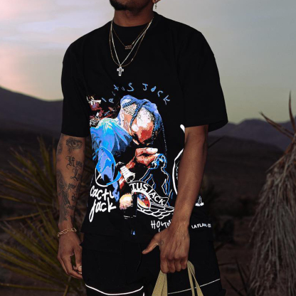 Casual street rapper printed T-shirt