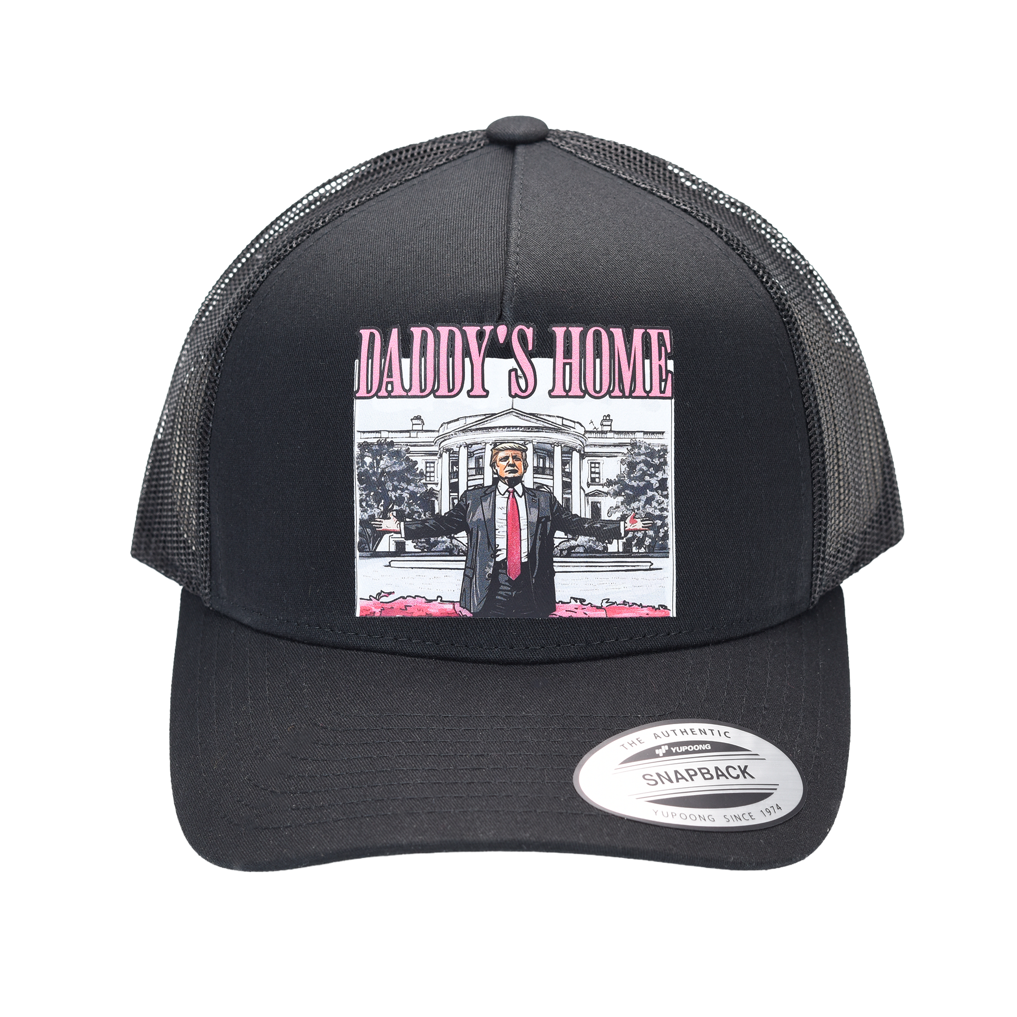 Make a statement with this Black or White Hat, featuring Trump standing proudly in front of the White House with the words �Daddy�s Home.� Designed for comfort and confidence, this hat blends everyday wearability with a message that stands tall. It�s soft, breathable, and durable � perfect for your weekend barbecues, celebrations, or daily wear.?
