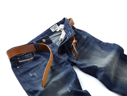 Introducing our DSL Jeans Blue Ripped Slim Straight Pants - perfect for the fashion-forward individual seeking trendy yet comfortable clothing.