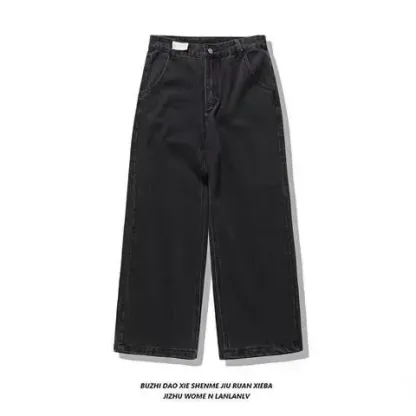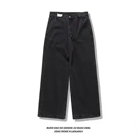 Harajuku Hip Hop PROTECT Streetwear Jeans Y2K mens Pants Letter Embroidery High Waist Wide Leg Trouser Vintage Blue Baggy Jeans