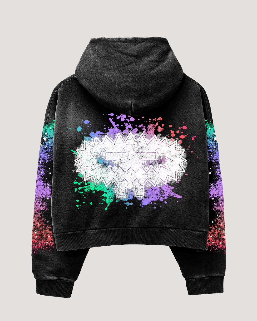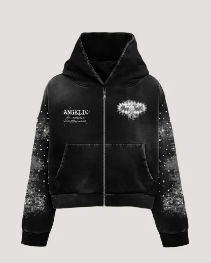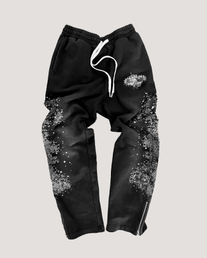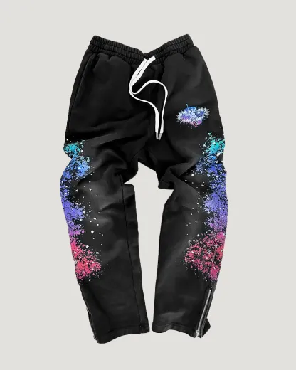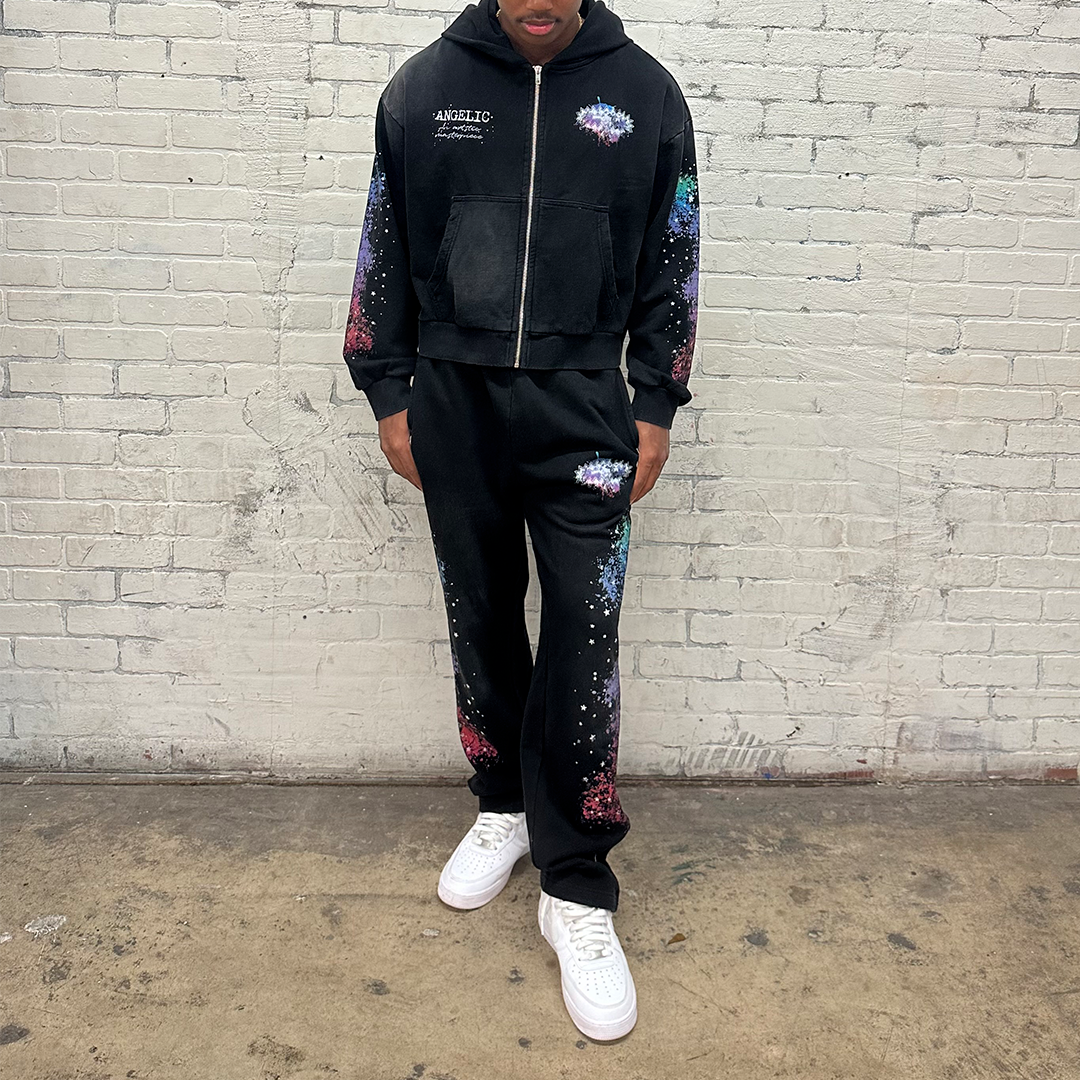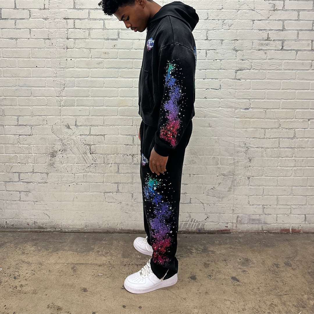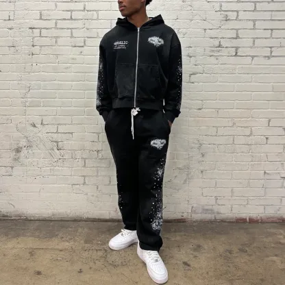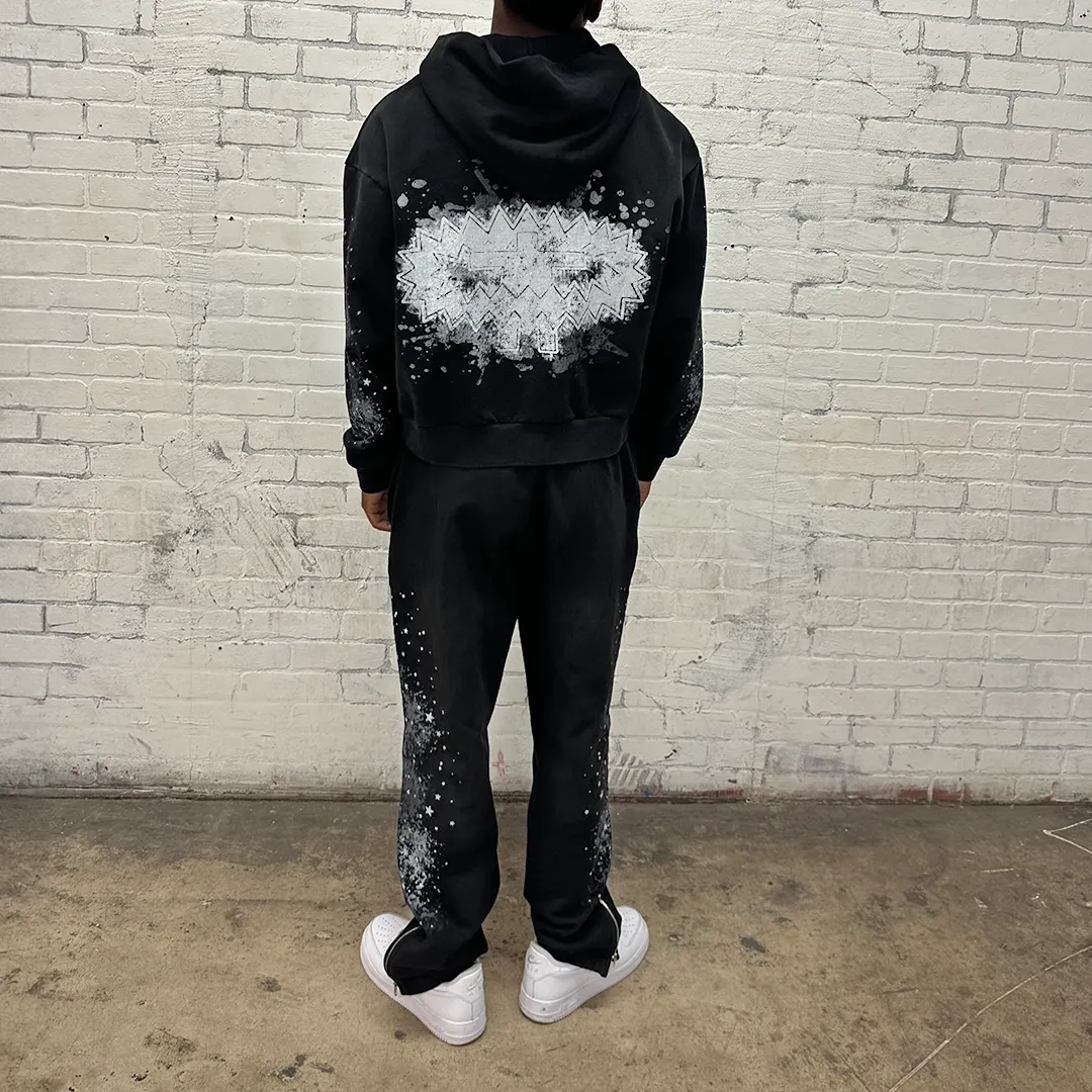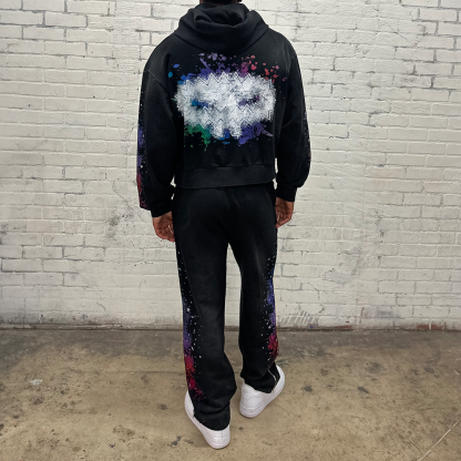 Ink-splashed print hoodie two-piece set