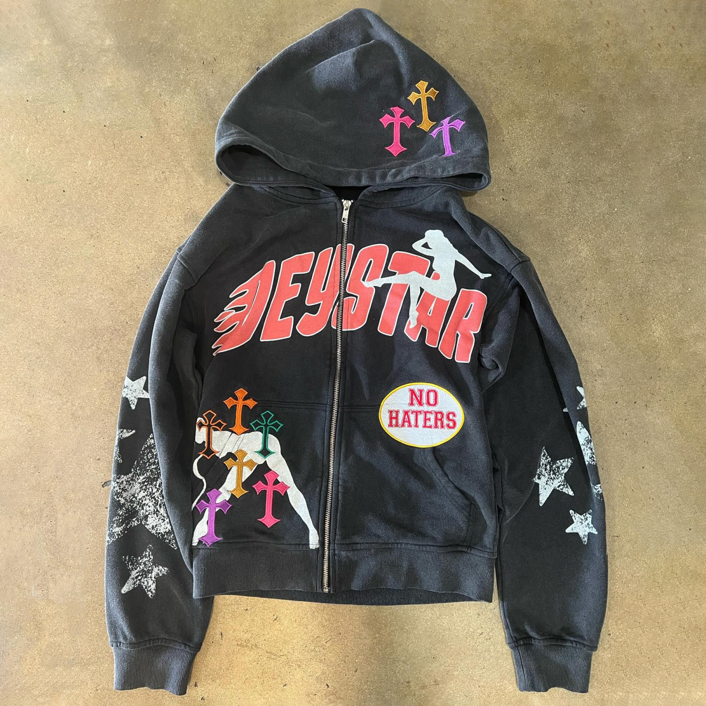 Letter Cross Print Long Sleeve Zipper Hoodies