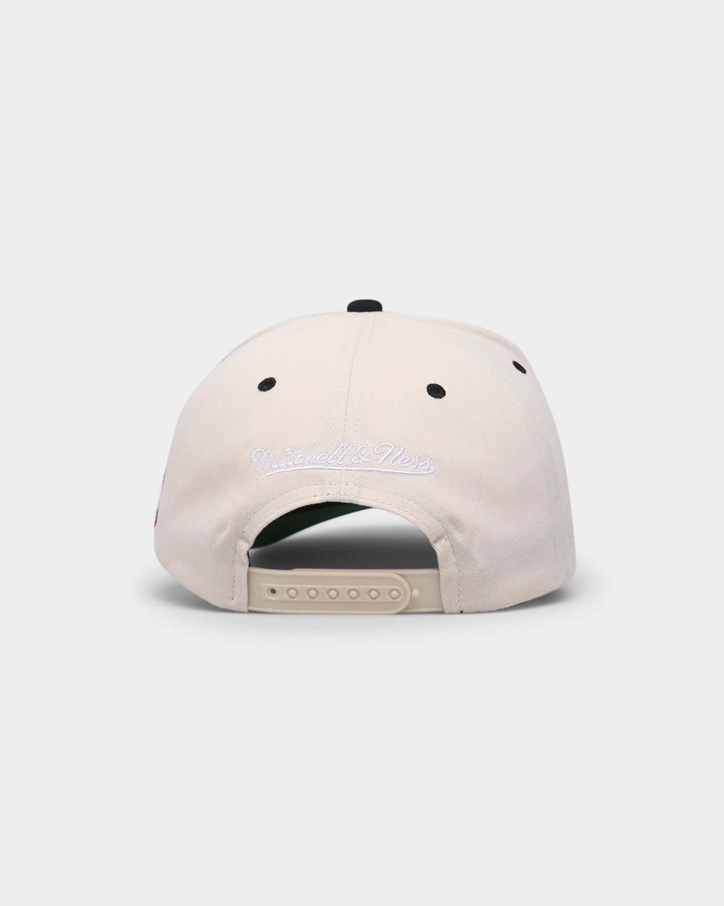 The "Cream Team Script" Pro Crown Snapback is a beautifully executed cream hat with an OG team coloured script & brim, giving that nostalgic & old skool look & feel. An additional team logo pops on the left side. - World exclusive "Cream Team Script" collection- Satin embroidered team script - Aditional team logo to side - Deep crown for a pronounced on head fit - Pre-curved brim / kelly green underbrim - Eyelet ventilation - Snapback adjustable closure - 6-panel - Composition: 100% brushed cotton - Colour: Cream - Style: MNP720215
