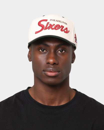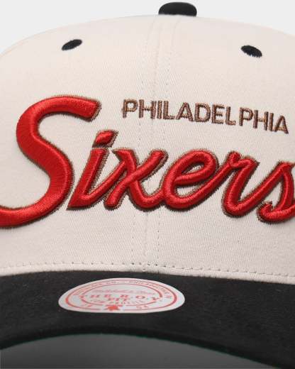 Mitchell & Ness Philadelphia Sixers "Cream Team Script" Pro Crown Snapback Cream