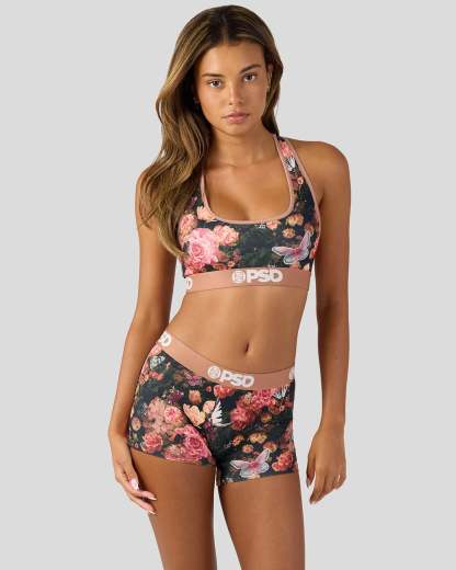 Featuring butterflies and animal-printed flowers, this new look is where edgy meets femme. The Moody Blooms Boy Short is made from a silky poly blend with a comfortable full-coverage, keep-you-in fit. The PSD boy shorts are perfect for everyday wear and working out.