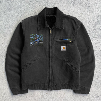 Music Single Printed Long Sleeve Zipper Multi-Pocket Jacket
