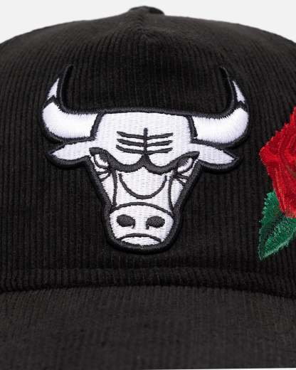 New Era Chicago Bulls 'Corduroy Roses' Golfer Pre-Curved Snapback Black Corduroy/White