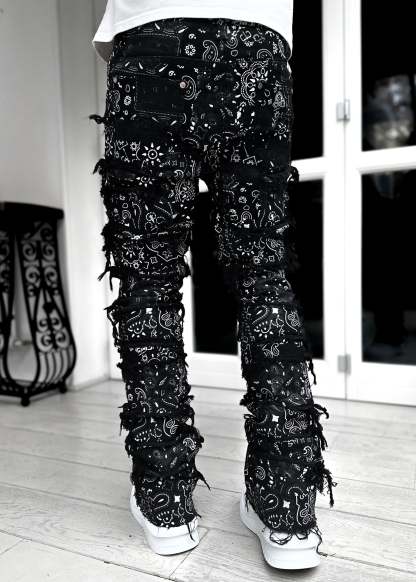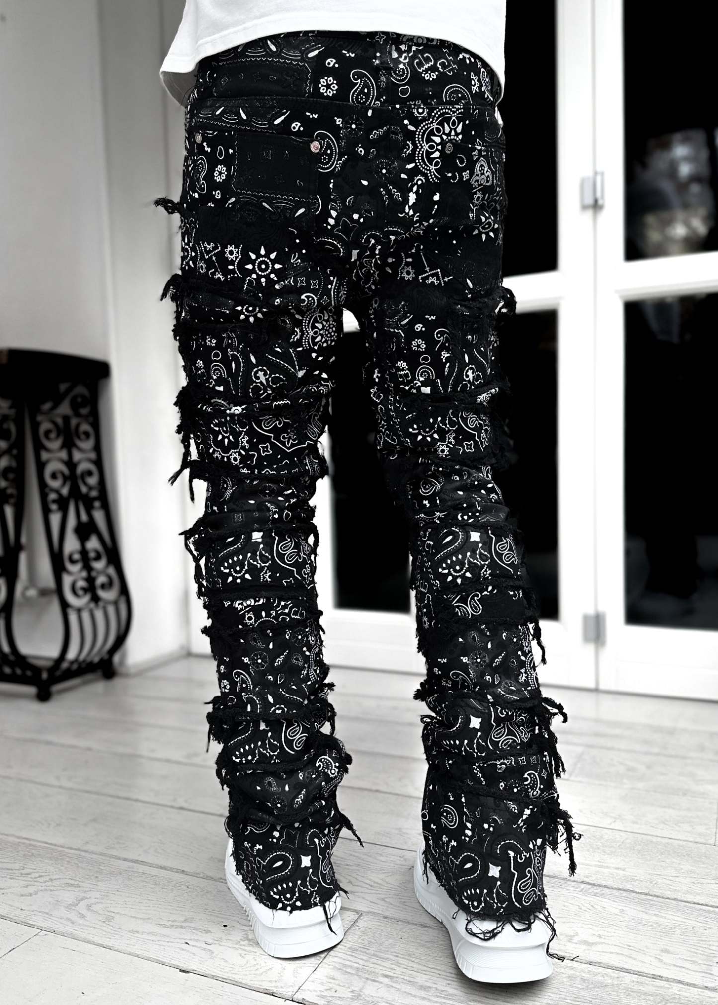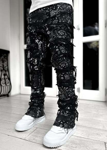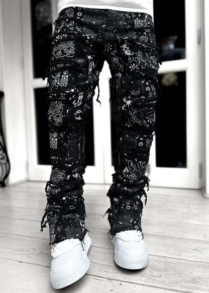 Featuring embroidery, side pockets and back pockets. Tapered fit.