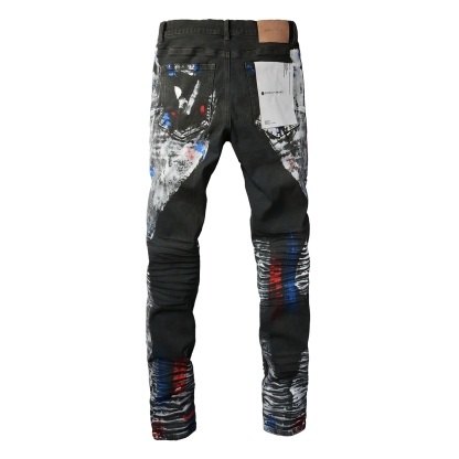 Featuring distressed finishes, splash detailing, mid-rise, button fly, belt loops, classic 5-pocket design and a slim fit.