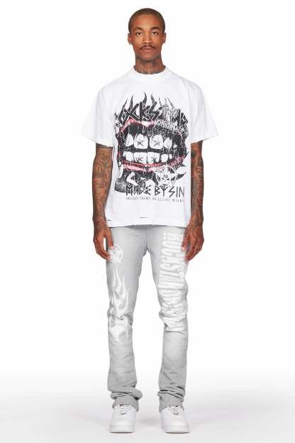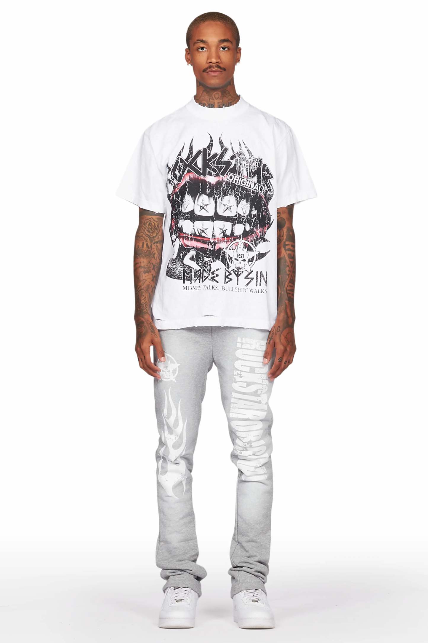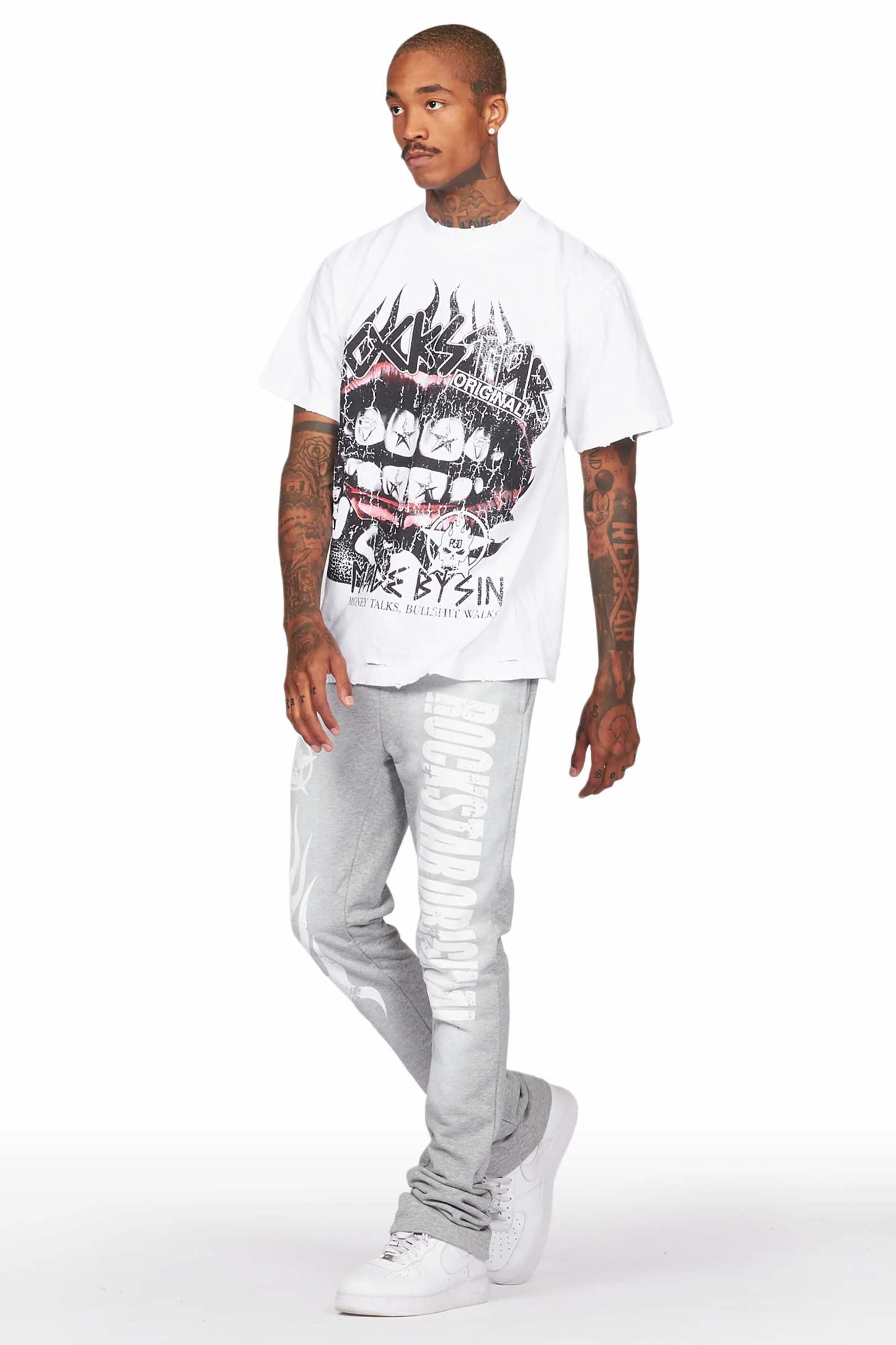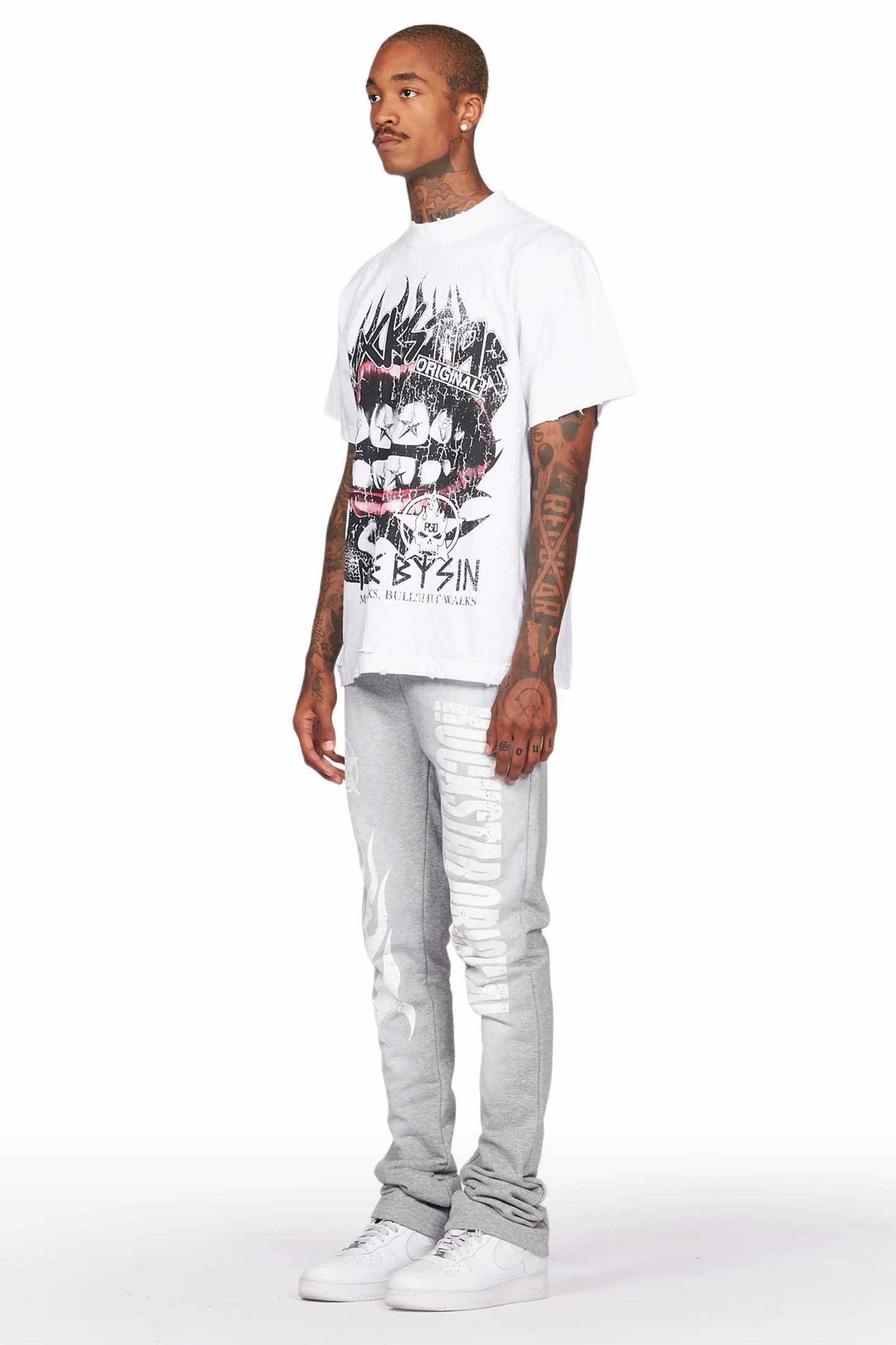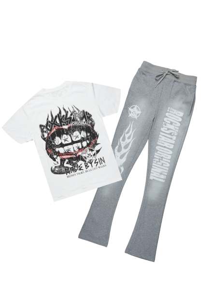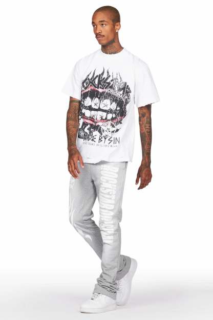 Vadim White/Grey Oversize T-Shirt/Stacked Flare Track Set