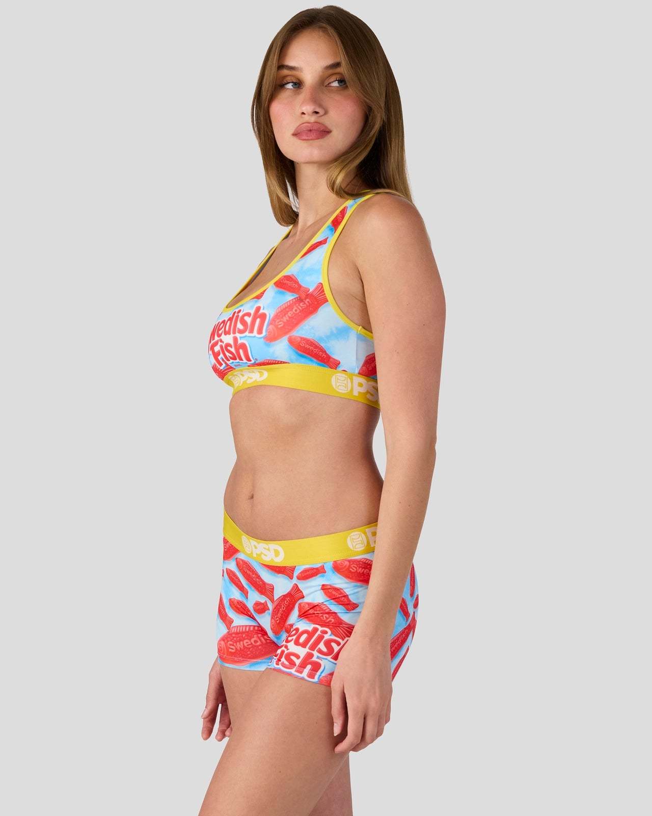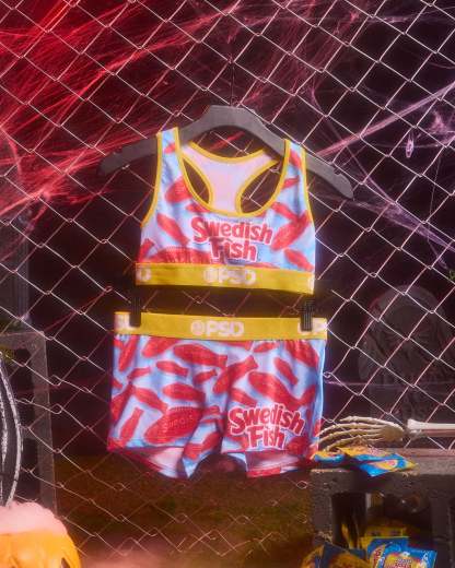 This drop is here to satisfy your sweet tooth long before you can fill your Halloween bucket. New to the candy collection, the Swedish Fish Boy Short is made from a silky poly blend with a comfortable full coverage, keep-you-in fit. The PSD boy shorts are perfect for everyday wear and working out.