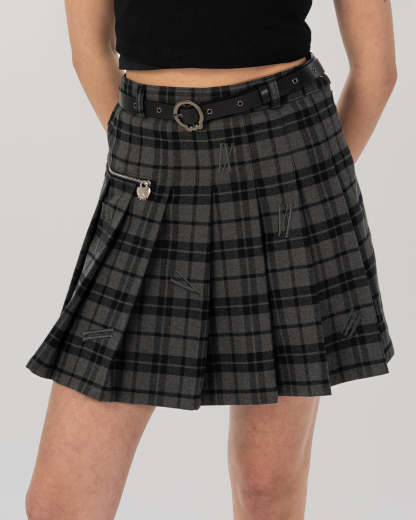- Plaid knife-pleated mini skirt
