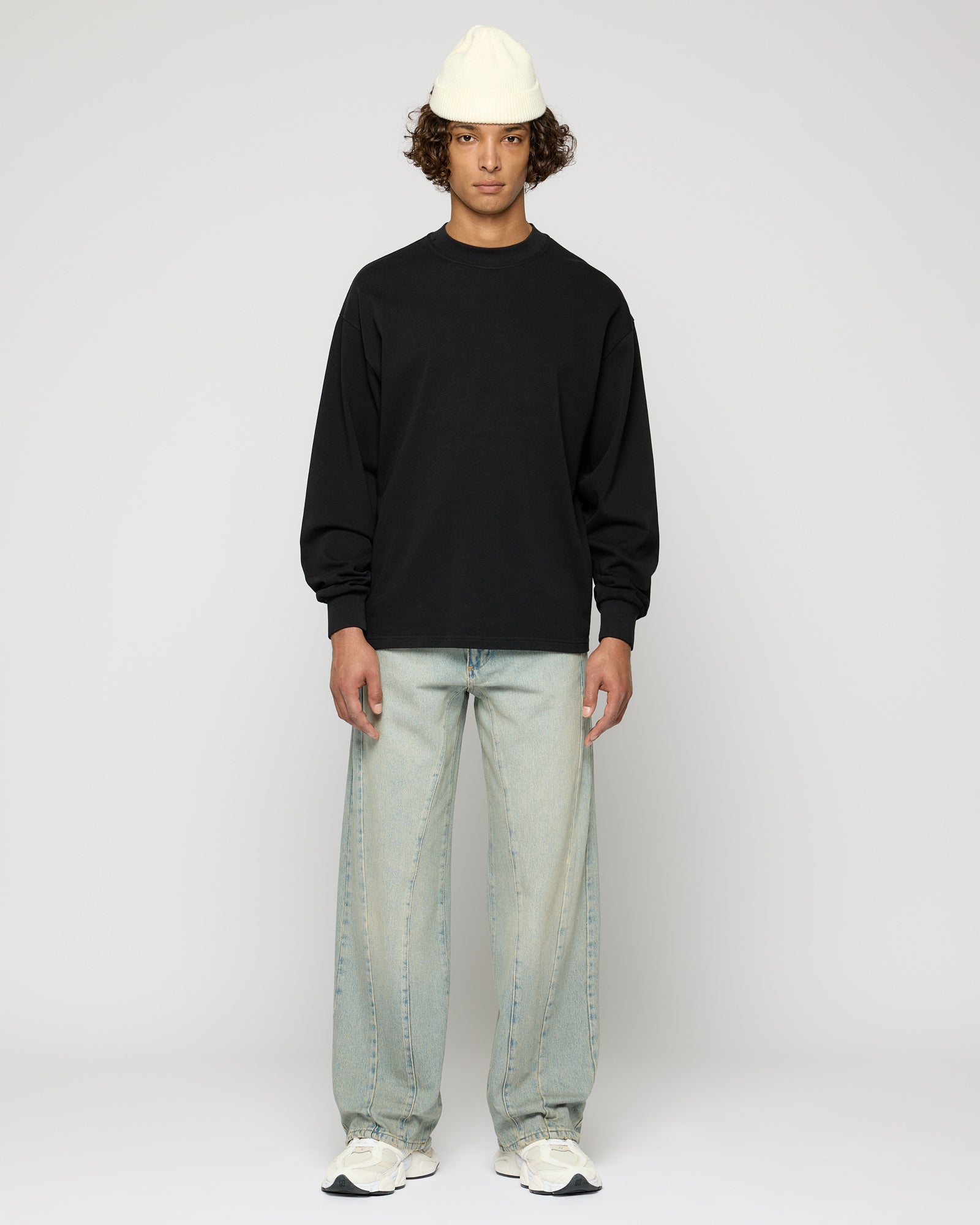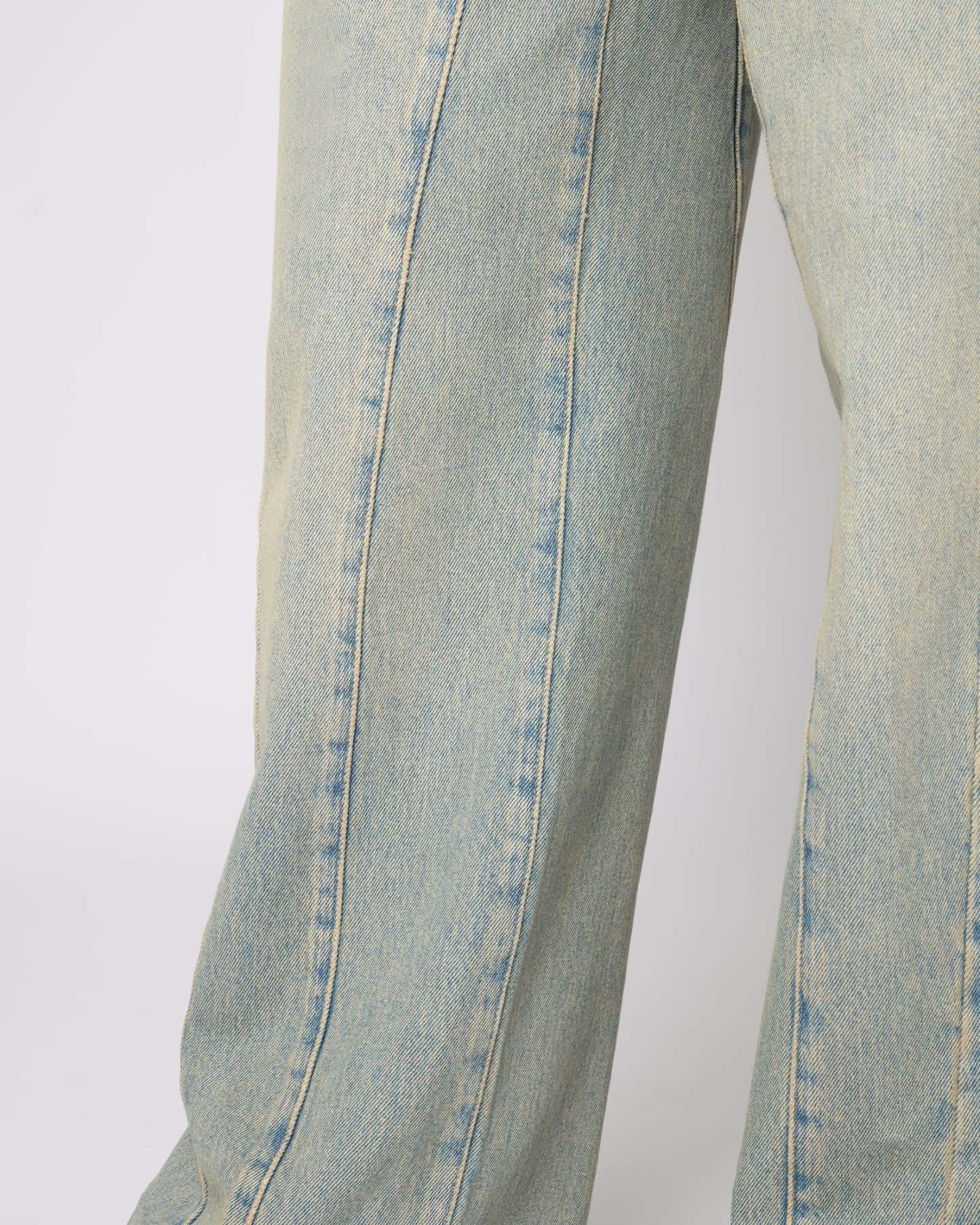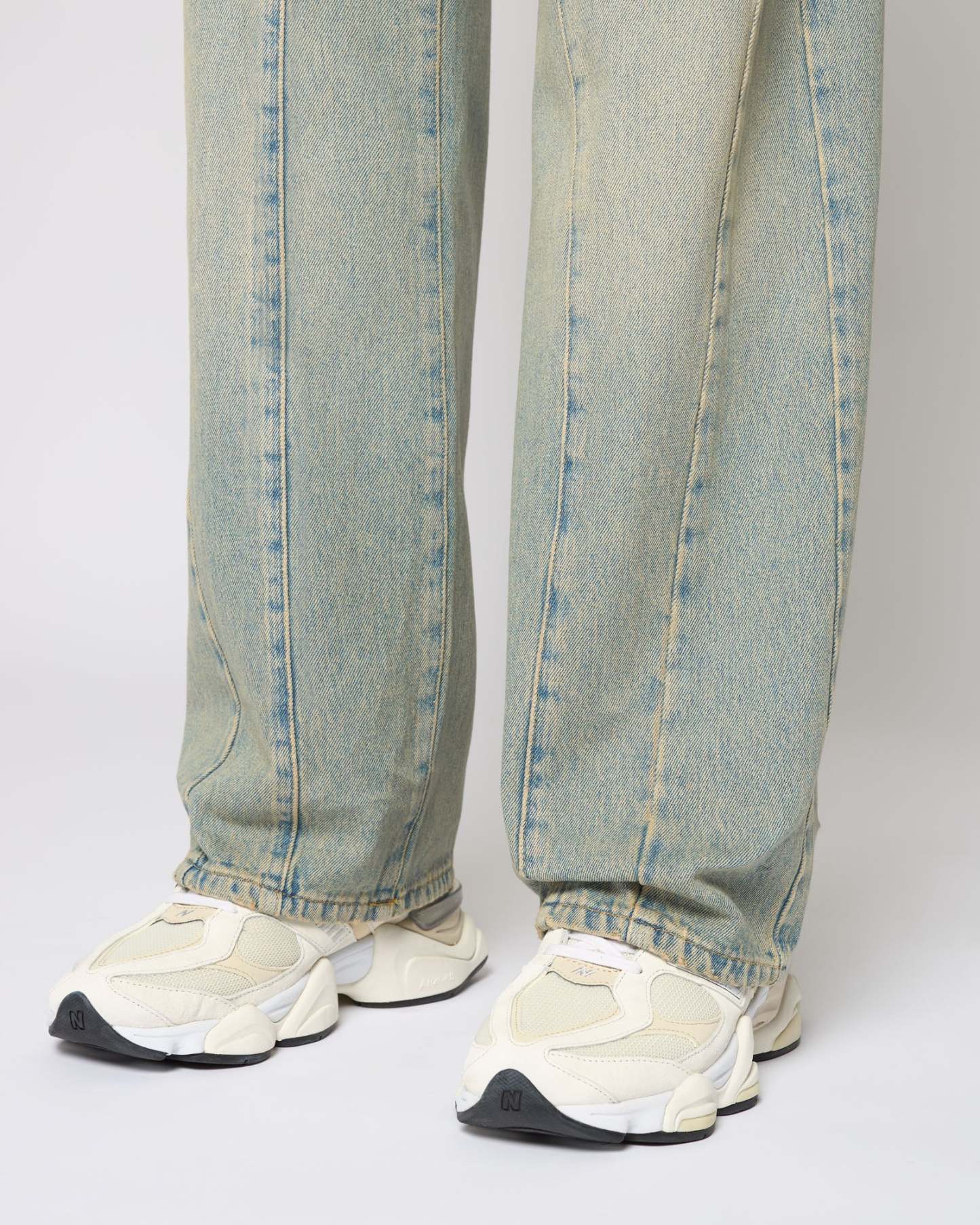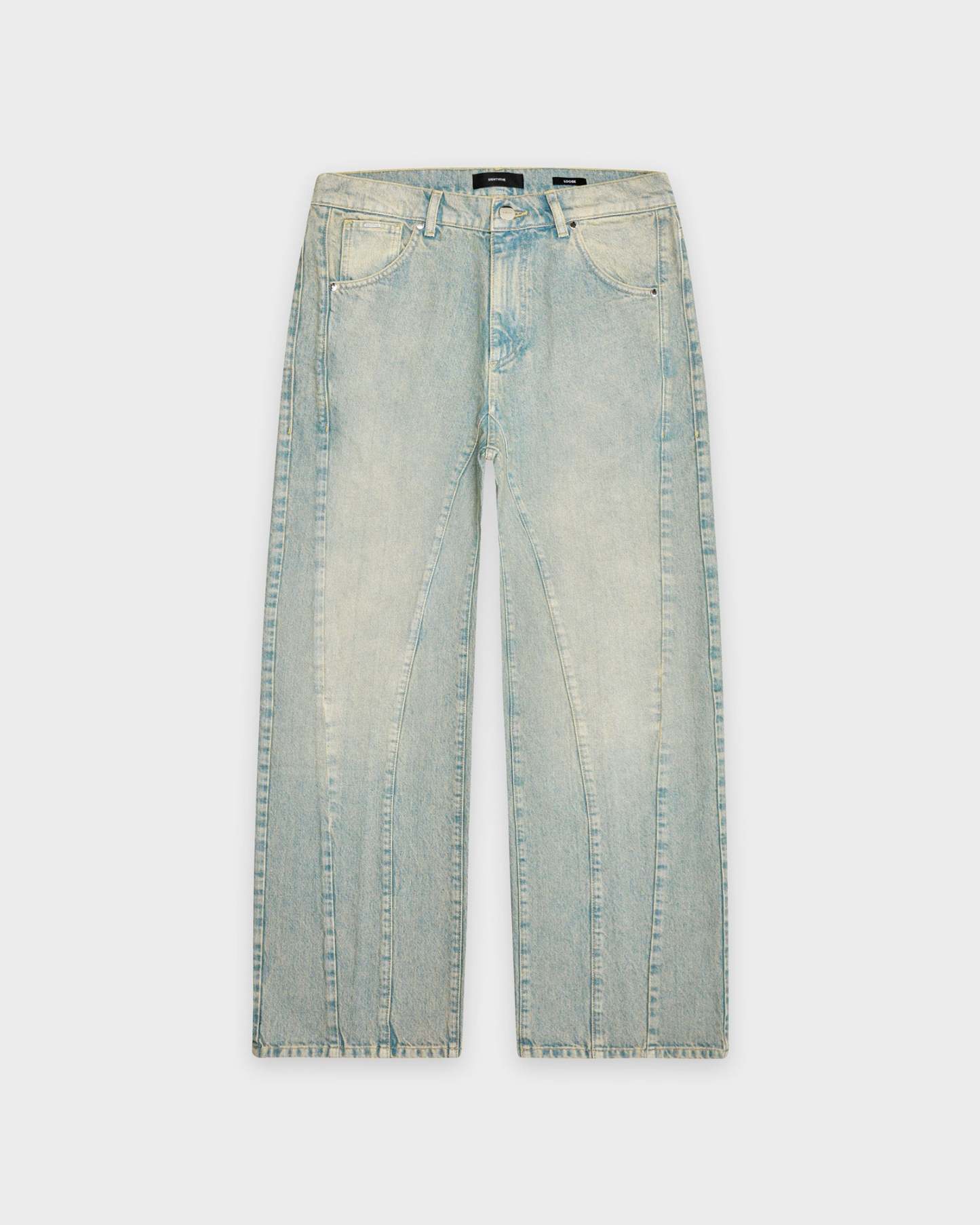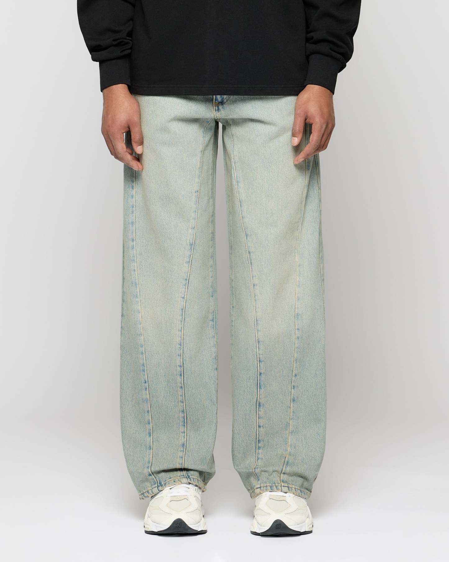 The model is 186 cm tall, weighs 70 kg and wears size 31